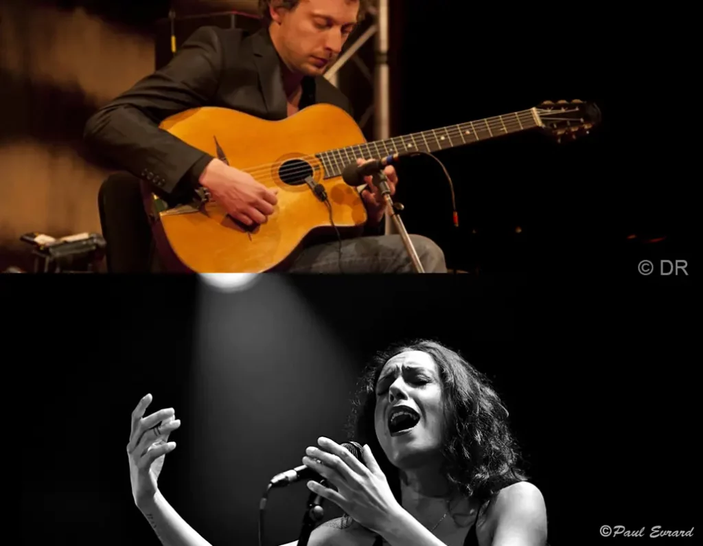 Le dimanche 3 mai,en fin de matinée, au Mas de la Cure, Le dimanche 3 mai, à 11h, au Mas de la Cure,en collaboration avec La Cie Jean-Jacques Sanchez dans le cadre des Festivalines, la voix de Paloma Pradal rencontre la guitare d’Adrien Moignard. Leur duo, qui alterne pièces intimistes et envolées virtuoses, puise autant dans la tradition des musiques flamenco et latines que dans des relectures personnelles. Gitane par sa mère et issue d’une grande famille d’artistes de culture hispanique, Paloma Pradal porte un héritage fort qu’elle transmet sur les scènes du monde entier, sa puissance et sa singularité amènent un moment hors du temps. À ses côtés, Adrien Moignard, figure incontournable du swing manouche et guitariste phare de la scène jazz actuelle, ajoute fougue et finesse en toute complicité
